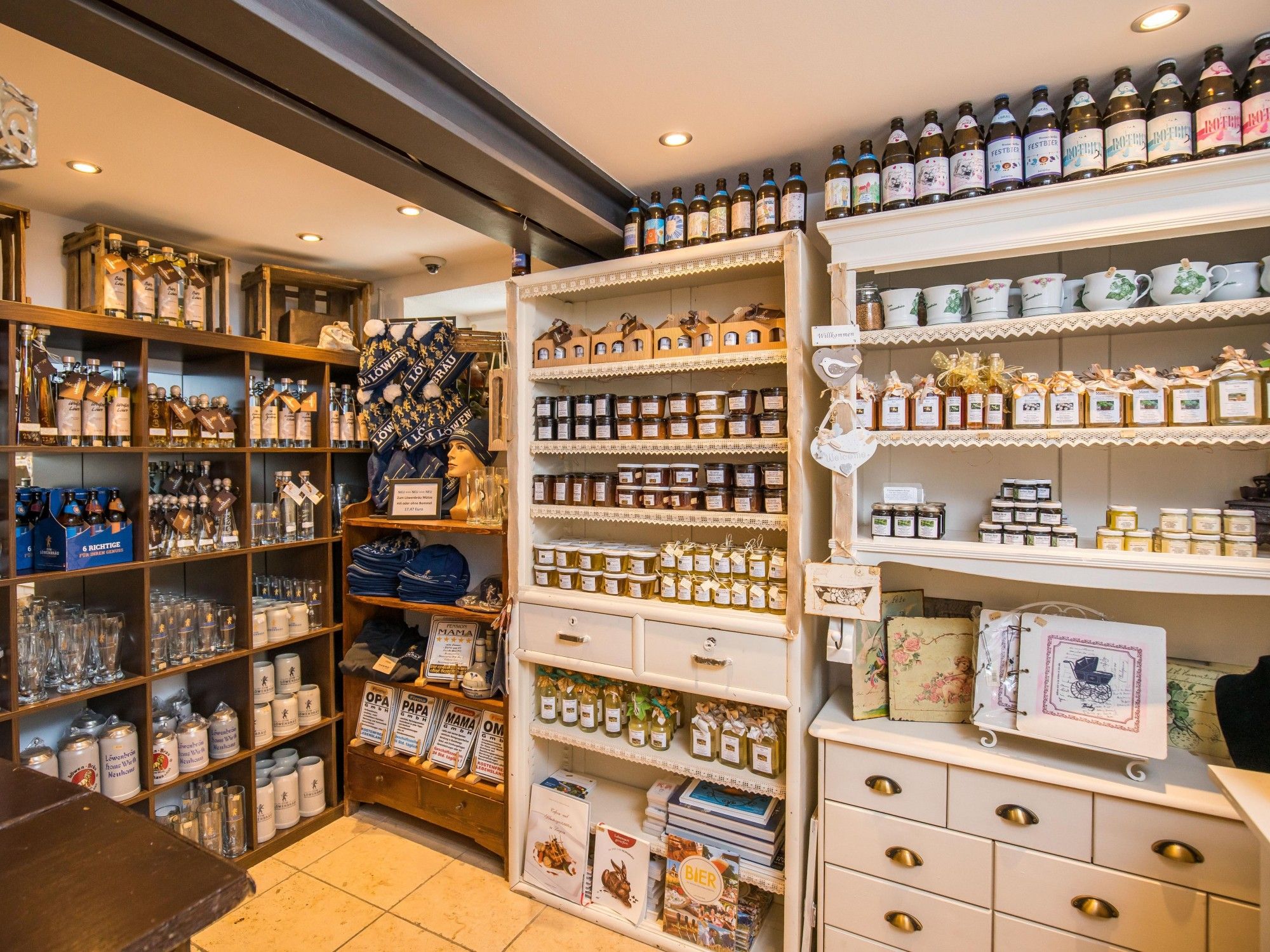 Damit Sie auf unsere selbst gemachten Besonderheiten zuhause nicht verzichten müssen oder, wenn Sie ein Mitbringsel brauchen, finden Sie in unserem Brauereiladen eine kleine Auswahl unserer Produkte. Der Brauereiladen befindet sich direkt gegenüber der Rezeption.