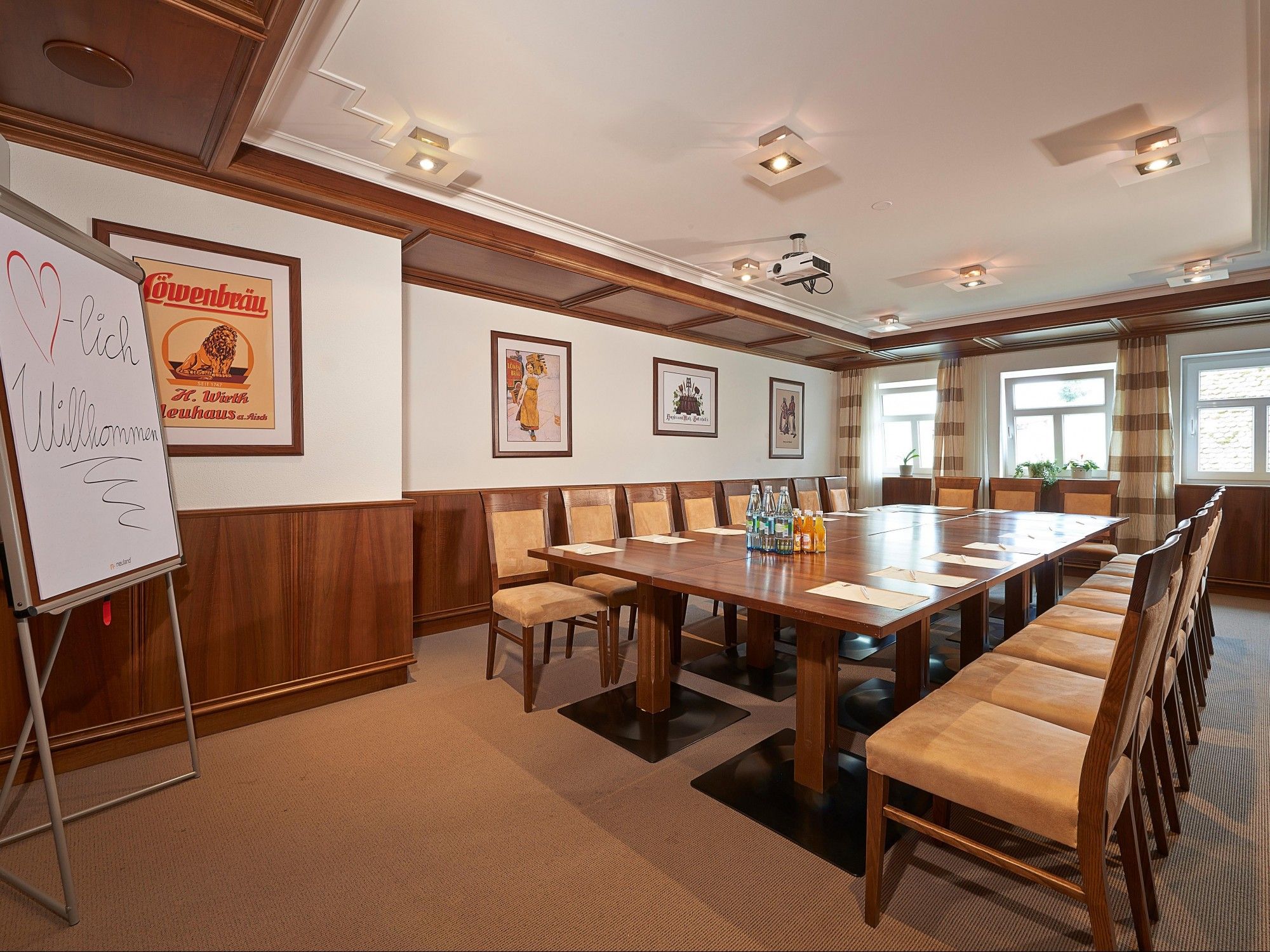 Unser Tagungsraum (ca. 30m² groß, ausgestattet mit Beamer, Moderationskoffer, 2 Pinnwänden und 1 Flipchart) befindet sich im ersten Stock und die Gestaltung Ihrer Veranstaltung planen wir ganz nach Ihren Wünschen gemeinsam mit Ihnen. Im gesamten Hotel- und Tagungsbereich steht kostenfreies W-LAN zur Verfügung.